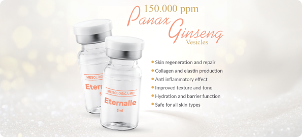 Eternalle는 미백과 주름 개선을 동시에 실현하는 프리미엄 이중 솔루션으로, 150,000ppm의 인삼 유래 베지클(Panax Ginseng Vesicles)을 함유하여 피부에 풍부한 영양을 제공합니다.